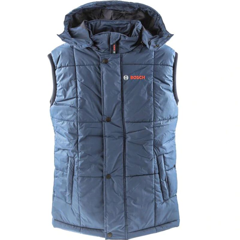 Жилет Bosch синий с отстёгивающимся капюшоном из 3-х частей на кулиске с фиксаторами.