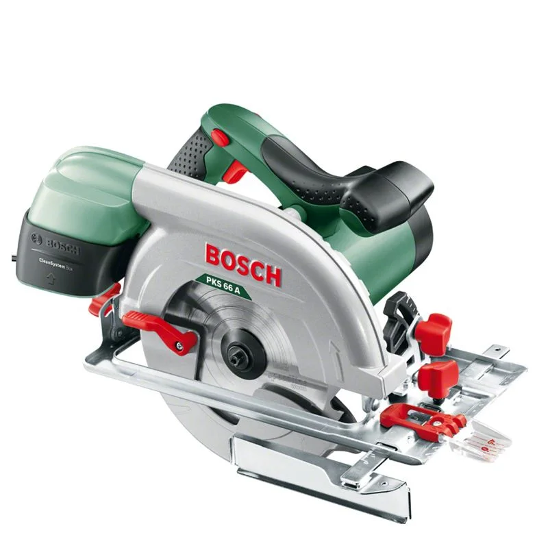 Циркулярная пила Bosch PKS 66 A — надежный инструмент с мощным двигателем на 1600 Вт для любых пильных работ в домашней мастерской. Эта модель идеально подходит для выполнения прямых резов по дереву глубиной до 66 мм. В комплект поставки входит дополнительная направляющая шина из пластика, которая обеспечивает безупречно ровный ход диска даже при длинных разрезах.